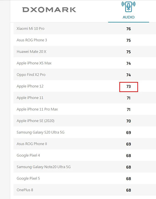 這一代蘋果是樣樣精通嗎?顯然不是,比如說續(xù)航就很拉胯,這也是公認(rèn)的了。但是在拍照、屏幕、甚至錄音上,其還是很強(qiáng)的。最近,Dxomark給出了iPhone 12的音頻測(cè)試結(jié)果,得分73分,比第一名小米10 Pro差了3分??紤]到這是一款重量162克的手機(jī),這成績還是驚人的。