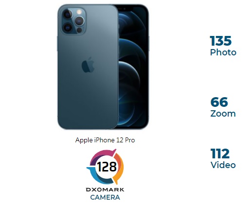 蘋果iPhone 12 Pro的拍照為135分,變焦66分,視頻112分。