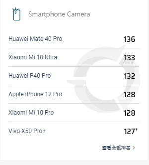 在DXOMARK的手機(jī)相機(jī)評(píng)分排行榜中,iPhone 12 Pro與小米10Pro并列第四。