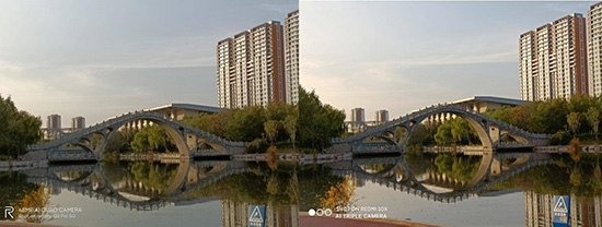 下面是兩倍變焦鏡頭拍攝的橋體,紅米10X的細節(jié)表現(xiàn)仍然更銳利一些。