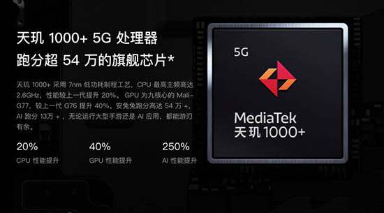 性能方面還是大家重點(diǎn)關(guān)注的,毫無(wú)疑問一顆性能強(qiáng)大的內(nèi)芯才是用戶得以青睞的基本點(diǎn),realme真我X7 Pro搭載聯(lián)發(fā)科天璣1000+5G移動(dòng)平臺(tái),是今年市面上除驍龍865+外,無(wú)數(shù)不多的可選旗艦級(jí)處理器,是聯(lián)發(fā)科的翻身之作,這個(gè)天璣1000+5G處理芯片為7nm制程工藝,其CPU擁有4個(gè)2.6GHz的ARM Cortex-A77核心和4個(gè)2.0GHz的ARM Cortex-A55核心,也就是有8個(gè)核心,相比上一代A76架構(gòu)性能提升20%,功耗降低15%。其GPU則為Mali-G77,相比上一代Mali-G76性能提升約20%。