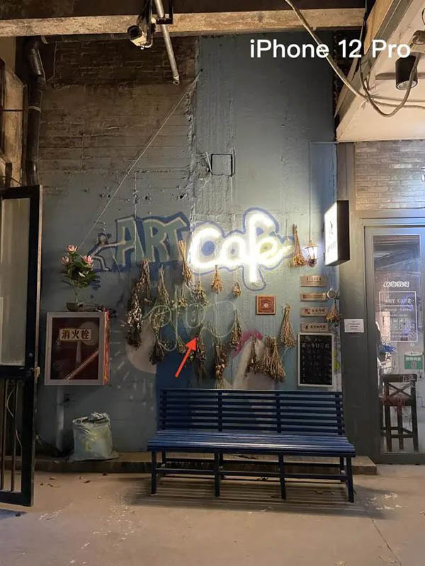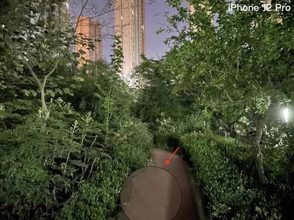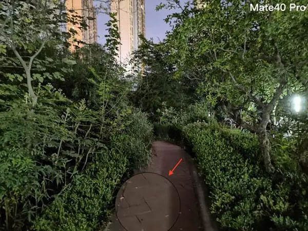 如果拍攝場景光線極暗,兩款手機的表現(xiàn)各有千秋。如上圖所示,iPhone 12 Pro雖然丟失了地面細(xì)節(jié),但對綠植的細(xì)節(jié)保留要比Mate40 Pro更好。
