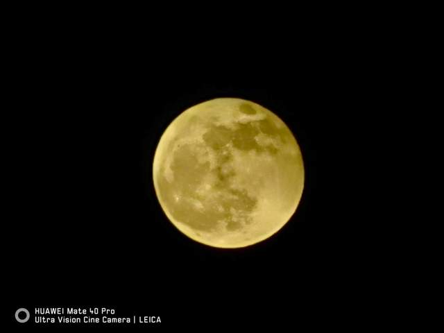 最后再來看看長焦夜景表現(xiàn)。一提到這個(gè)場(chǎng)景,相信各位都會(huì)想看月亮的美圖。正好,夜景拍攝當(dāng)晚就是農(nóng)歷十六,先來一張50倍變焦?jié)M月鎮(zhèn)樓。