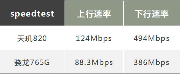 根據(jù)speedtest的測試,天璣820的發(fā)揮要比驍龍765G好一些,這主要得益于它的提速能力比驍龍765G快,而且比較穩(wěn)定。