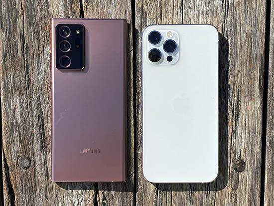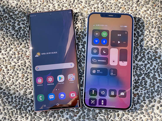 iPhone 12 Pro Max(右)跟三星Galaxy Note 20 Ultra相比比較小號(hào)一些。