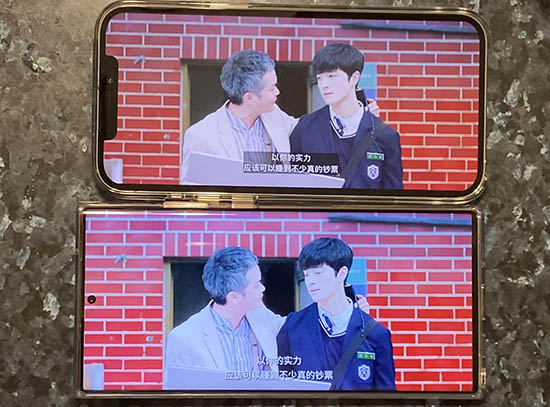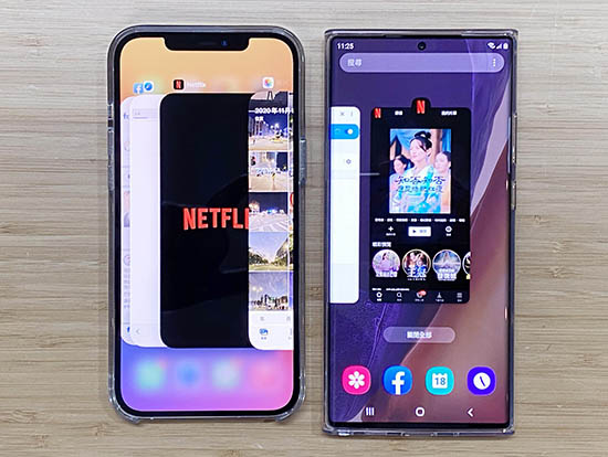 觀看Netflix時(shí),兩款手機(jī)顯示的色彩各有不同。