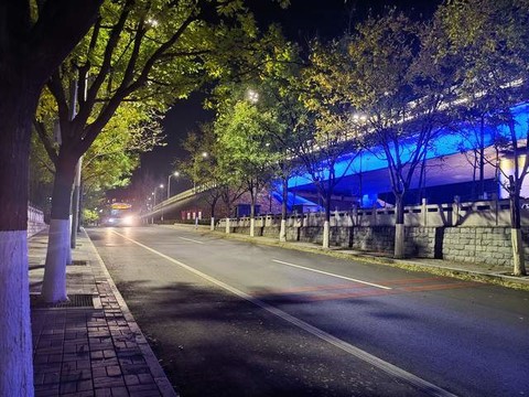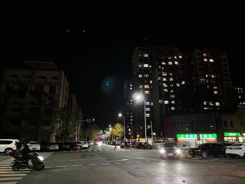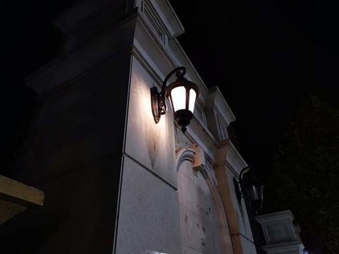 iPhone的夜景模式是衡量后自動(dòng)打開,而小米是手動(dòng)打開,所以這里小米默認(rèn)都不打開,而iPhone這張顯然沒有自動(dòng)打開,曝光效果和小米比差距很大,并且路燈邊還有明顯的鬼影。
