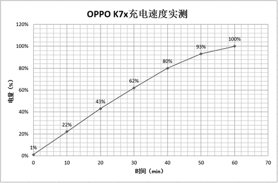 在實(shí)際充電測(cè)試中,OPPO?K7x?60分鐘左右便可充滿5000mAh大容量電池,10分鐘可以充至22%的電量,30分鐘便可充至62%,充電時(shí)長(zhǎng)大大縮減,尤其是在緊急外出時(shí)遇上手機(jī)電量不夠,利用10分鐘碎片時(shí)間就能為手機(jī)進(jìn)行閃充快速補(bǔ)充電量,也著實(shí)是一件令人安全感倍增的事。?
