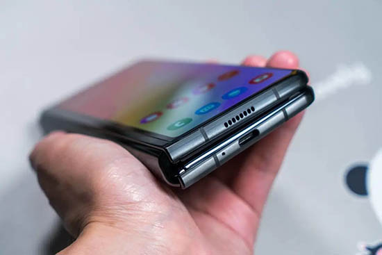 實(shí)際上整體的重量為282g,內(nèi)部旗艦的極致堆疊與空間利用足夠證明三星對(duì)于折疊屏工藝的把控力。真正等到實(shí)際上手才能體會(huì)到的差異是鉸鏈和轉(zhuǎn)軸的改進(jìn),F(xiàn)old2貼合后「噠」的一聲相較于以前更為沉悶,而開(kāi)啟與關(guān)閉的過(guò)程反而更為流暢。其內(nèi)部結(jié)構(gòu)要比前代更小并且采用微型纖維材質(zhì)能夠防止灰塵和顆粒的入侵。