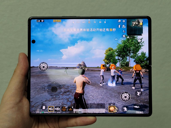 在4G時(shí)代,手機(jī)性能的飛速上漲促進(jìn)了手游的普及,娛樂至上時(shí)代拉開帷幕。隨著手游發(fā)展的還有一些對游戲公平性不太光彩的東西:層出不窮的游戲外掛游戲輔助,打破了游戲的公平性。貴為16999的頂級機(jī)王,三星Galaxy Z Fold2 5G 自然不會給用戶使用這些有違價(jià)值觀的東西,但 Z Fold2 5G 真的給用戶提供了一個(gè)游戲“外掛”,而且是合法合規(guī)的——借助大屏幕、獨(dú)特的屏幕比例,為用戶在諸如《王者榮耀》、《和平精英》游戲中提供了物理上的超大視野。