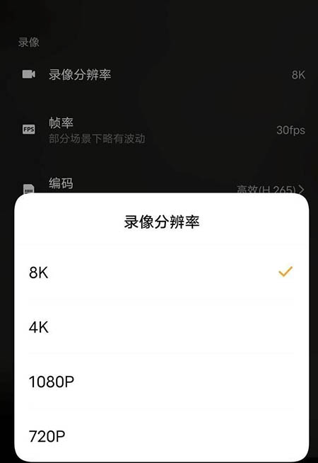 除了攝像頭的硬件規(guī)格之外,手機(jī)本身對于視頻記錄格式的支持在一定程度上也可以體現(xiàn)出其視頻拍攝實(shí)力。在使用vivo X50 Pro+的主攝和2X長焦鏡頭進(jìn)行視頻拍攝時(shí),可以選擇使用8K 30fps或者是4K 60fps格式進(jìn)行拍攝。