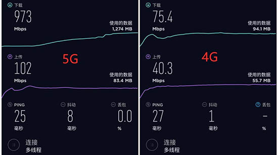 下行速率方面,5G網(wǎng)絡(luò)提升到了前者的12.9倍以上。