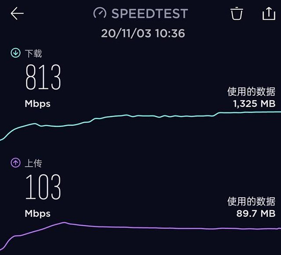 OPPO K7x作為一款5G手機,其5G功能的使用體驗也是至關(guān)重要的,而OPPO K7x在5G實測中也有著優(yōu)秀的表現(xiàn)。在實際的5G測試中,根據(jù)使用Speedtest測得的數(shù)據(jù),OPPO K7x在中關(guān)村地區(qū)的聯(lián)通5G環(huán)境下可以實現(xiàn)813Mbps的平均下載速率,其上傳速率也達到了103Mbps,這一成績在5G手機中相當(dāng)優(yōu)秀,達到了旗艦手機的水平。