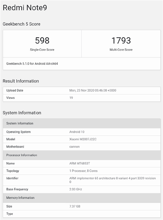 Redmi Note9系列即將發(fā)布,新品細節(jié)陸續(xù)被曝光。就在今天,Redmi Note 9 5G標準版現(xiàn)身GeekBench跑分網(wǎng)站。GeekBench網(wǎng)站顯示,Redmi Note 9 5G使用的是聯(lián)發(fā)科天璣800U芯片。
