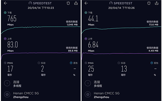 對(duì)比普通4G網(wǎng)絡(luò)的44.1Mbps的下行速率,5G網(wǎng)絡(luò)提升到了前者17倍以上。