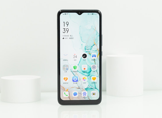 海信5G手機(jī)F50+配備了一塊6.52英寸的LCD材質(zhì)的屏幕,為水滴屏設(shè)計(jì)。屏幕左右上三邊框基本等寬,下邊框要寬大一些。水滴區(qū)域占用的面積比較小,可以保證較為開闊的視野。
