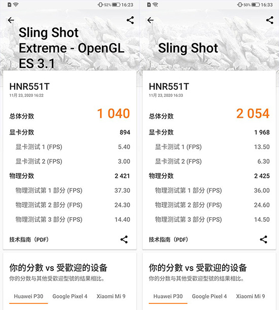 此外,為了測(cè)試海信5G手機(jī)F50+的GPU的性能,我們使用3D Mark的Sling Shot Extreme和Sling Shot為海信5G手機(jī)F50+跑分,海信5G手機(jī)F50+在這兩項(xiàng)分別獲得了1040分和2054分,表現(xiàn)十分優(yōu)秀。