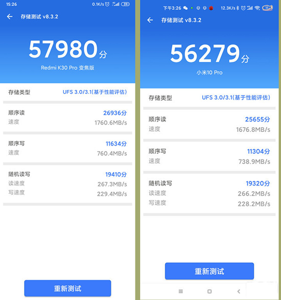內(nèi)存和閃存的性能能夠顯著提升對大型數(shù)據(jù)的使用。測試中,K30 Pro的讀寫得分分別達到了1760MB/S和760MB/S,整體得分也是超出了米10 Pro,但這些差距在運行大型游戲、大型圖像處理、快速讀取文件等方面,我們?nèi)祟愂强隙ǜ惺懿怀鰜淼摹?