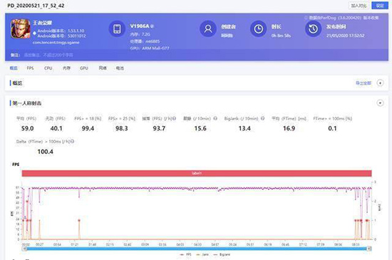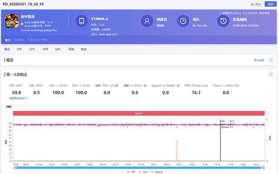 從實際測試來看,把和平精英的畫面設置為極限,流暢模式開抗鋸齒,在一局的游戲時間中,天璣1000Plus的整體幀率保持在59.8左右,并且整體波動僅為0.5幀,達到了旗艦級的游戲體驗,并且和當下的驍龍865、麒麟990 5G相當。