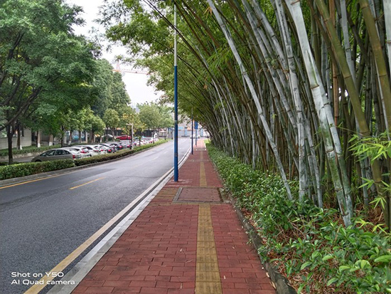 vivo Y50后置相機系統(tǒng)配備了全新的智慧四攝。主攝像頭為1300萬像素,F(xiàn)/2.2大光圈,并加入了PDAF相位對焦。從實拍圖上看,樹葉的白平衡處理得很好,沒有很突兀的感覺。整體上與肉眼所見的場景相符,畫面純凈明亮沒有明顯瑕疵。