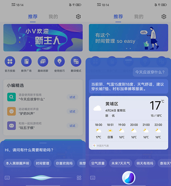 最新的Funtouch OS中內(nèi)置了Jovi語音助手的功能,只需長按電源鍵即可將其呼出。不管你是想點(diǎn)外賣、發(fā)紅包還是定鬧鐘,對(duì)著手機(jī),簡單一句話就能幫你完成。簡單又省事,極大提高了日常生活的效率。例如詢問“今天應(yīng)該穿什么”,語音助手便會(huì)依據(jù)我所在地的天氣,給出ta的建議。