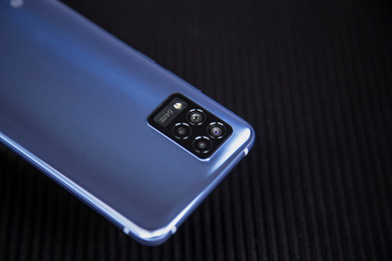 配色上,似乎中興特別中意藍(lán)色,幾乎所有機(jī)型的主打配色都是藍(lán)色。我們手里這款命名為水漾冰藍(lán)配色,在沉穩(wěn)成熟的同時(shí),還能反射出層層光影,總算有些炫麗了。背部左上角是“四餅”排列的四攝組合,凸起不算嚴(yán)重,但矩陣邊緣有些割手。
