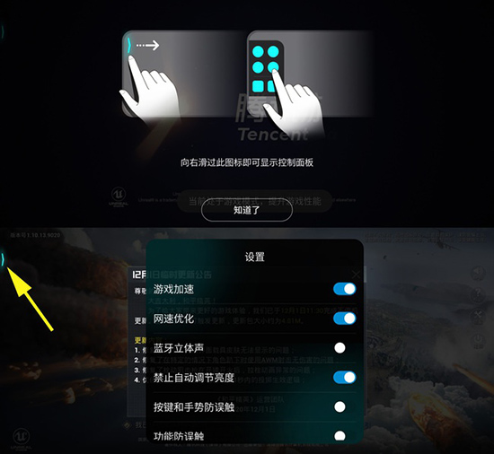進(jìn)入游戲后在游戲界面左側(cè)靠上部分向內(nèi)劃即可呼出懸浮窗,從而對(duì)游戲加速、網(wǎng)速優(yōu)化、聲音、亮度、防誤觸、來電免打擾、通知隱藏等功能進(jìn)行快捷設(shè)置,更暢快地享受游戲。