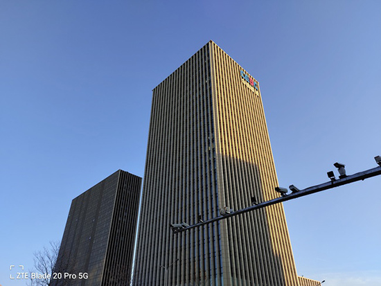 常規(guī)樣張中興Blade 20 Pro的表現(xiàn)不錯(cuò),在大面積出現(xiàn)冷色或者暖色的情況下也能保持較為準(zhǔn)確的白平衡,色彩還原相對(duì)準(zhǔn)確,畫(huà)面的曝光水平適中,天空等高光區(qū)域沒(méi)有過(guò)曝,建筑陰影中的線(xiàn)條等細(xì)節(jié)也得到了保留。