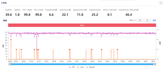 運(yùn)行《和平精英》的平均幀率為39.6。