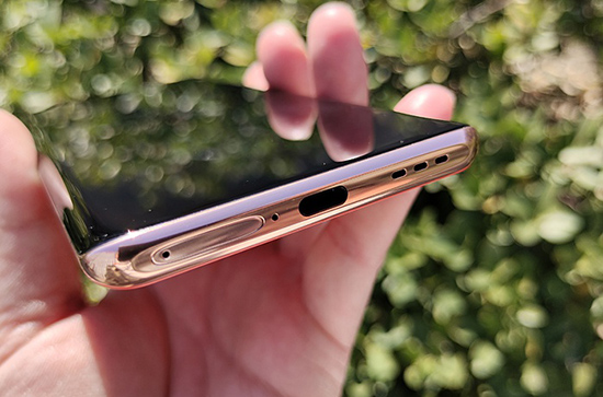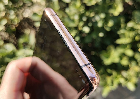 機身頂部邊框的中央,可以看到條形的聽筒,當然也是另一個立體聲揚聲器所在。與底部邊框的揚聲器一起,構成了OPPO Find X2 Pro的雙立體聲揚聲器。