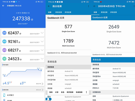 受限于成本和定位,小米10青春版使用了高通驍龍765G芯片處理器,支持SA/NSA雙模5G。市面上使用這一芯片的產(chǎn)品已有不少,具體的性能相信大家都十分清楚了。