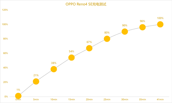 而OPPO Reno4 SE則從1%到100%共用時(shí)41分鐘,正好是小米10青春版的一半,其實(shí)官方宣傳最快可37分鐘充滿,由于本次手里的是工程機(jī),所以Reno4 SE日常40分鐘之內(nèi)即可充滿。
