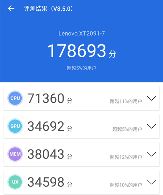 安兔兔跑分17869352分,典型的入門級(jí)表現(xiàn)