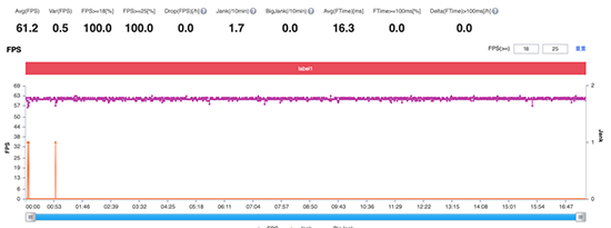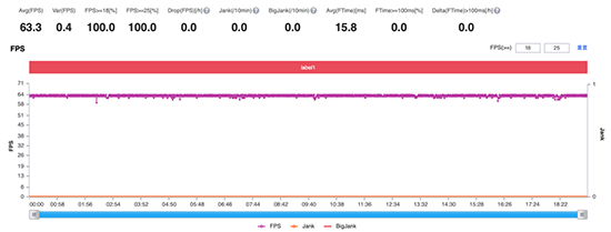 最后是我最近比較喜歡的英雄聯盟手機版,正好碰上加入繁體中文所以我就測試了一下。一局游戲下來平均幀數63.3,基本維持在64幀上下,這也讓我進一步期待這款游戲能夠正式上架。