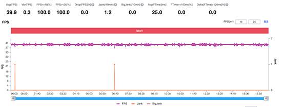 由于目前和平精英還沒有開啟高幀率模式,這里選擇HDR高清+極限幀率(最高40fps)。測得平均幀率為39.9,可以看出OPPO Reno5 Pro幾乎是全程滿幀率運行,而且卡頓很少。