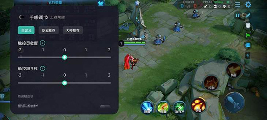 游戲玩家還可以在游戲助手中進(jìn)行手感調(diào)節(jié),包括觸控靈敏度和跟手性,系統(tǒng)還預(yù)置職業(yè)推薦和大神推薦兩種設(shè)置組合可供選擇,可以根據(jù)自己的操作習(xí)慣設(shè)置對(duì)應(yīng)參數(shù)。