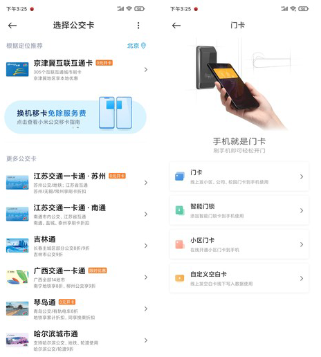 可以看到,咱們的這個紅米Note9 Pro支持多功能NFC,可以充當門禁卡和公交卡。