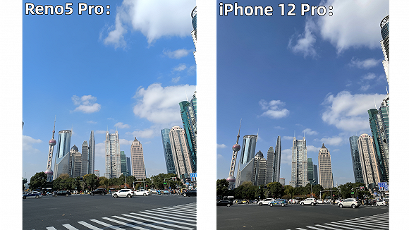 首先是主攝,同是直出樣張,iPhone的白平衡更加接近肉眼所見,Reno5 Pro會(huì)有一些調(diào)色后的效果,增加照片的飽和度。