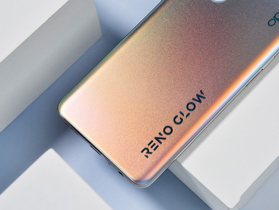 Reno Glow 2.0 星鉆工藝在視覺效果上做到了磨砂質(zhì)感,但卻比光面玻璃還要閃,反光強烈。但Reno5的反光并不是“照鏡子”,反射的不是物體,而是顏色,閃閃發(fā)光的色彩會讓人有一種手機后蓋自帶燈光的錯覺。