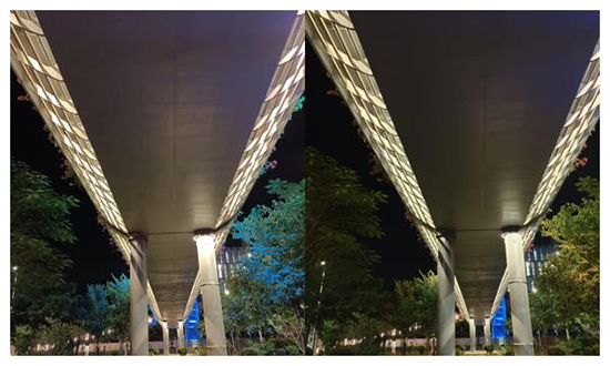 左:超級夜景模式開啟前 右:超級夜景模式開啟前后
