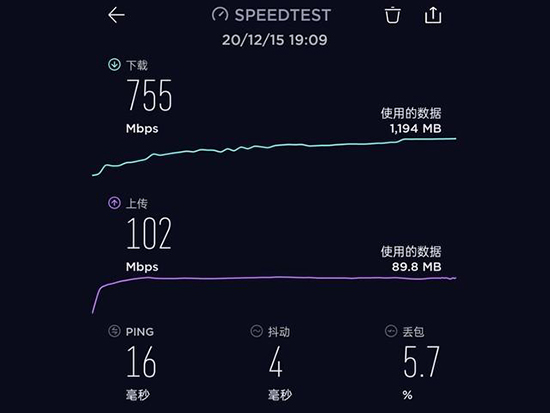 測試結(jié)果非常給力,Reno5的5G下載速度已經(jīng)比北京聯(lián)通官網(wǎng)上最快的光纖寬帶套餐還快大約50%(用貓插網(wǎng)線的那種)。下游戲時,屏幕還沒來得及自動熄屏就下載完成了。5G現(xiàn)在就已經(jīng)這么快,等未來基站真正鋪開后,體驗只能更好。