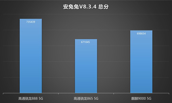 在高通驍龍888 5G之前,安卓平臺安兔兔跑分最高機(jī)型搭載的是麒麟 9000 5G,取得了698654分的成績(11月份安兔兔平均分?jǐn)?shù))。高通驍龍上一代旗艦移動平臺驍龍865 5G在安兔兔排行榜分?jǐn)?shù)最高機(jī)型上取得的成績?yōu)?71045分(11月份安兔兔平均分?jǐn)?shù))。