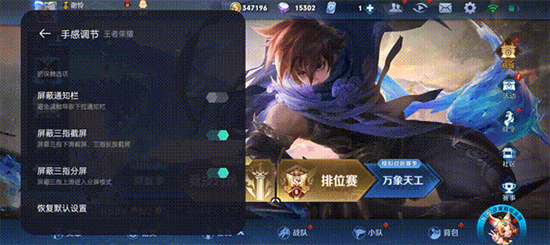 可以看到,在手感調(diào)節(jié)界面,觸控靈敏度和觸控更手性分別提供了5個檔位,第一次使用這個功能時,建議大家選擇職業(yè)推薦和大神推薦,如果不適應(yīng),再根據(jù)自己的需求調(diào)節(jié)就好,畢竟每個人的「手感」都是不相同的。另外,手感調(diào)節(jié)功能還提供了三個防誤觸選項:屏蔽通知欄、屏蔽三指截屏、屏蔽三指分屏,開啟后就不用擔(dān)心游戲時手滑誤觸了,游戲體驗更好。