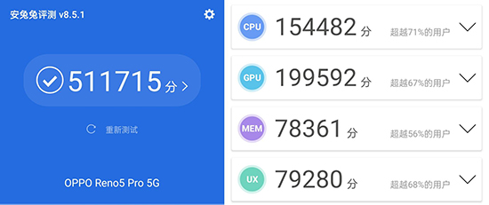 (OPPO Reno5 Pro安兔兔跑分)