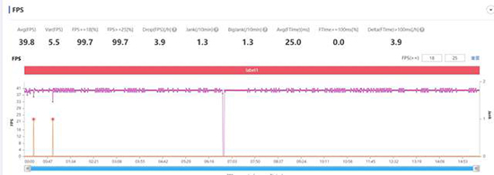 用《和平精英》來(lái)考察華為nova8 Pro在實(shí)際使用時(shí)的性能水平,測(cè)試時(shí)游戲?yàn)槿弋?huà)質(zhì),在大約15分鐘的游戲過(guò)程里,華為nova8 Pro 能夠跑出39.8fps 的平均幀率(滿幀40fps),并且?guī)实牟▌?dòng)很小。實(shí)際游玩時(shí),也感覺(jué)不到掉幀或卡頓的情況,非常流暢。