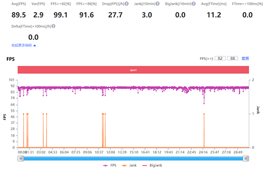 驍龍865這顆芯片大家已經(jīng)非常熟悉,這里不再贅述,直接進(jìn)入實(shí)測環(huán)節(jié)。最高畫質(zhì)的《王者榮耀》,平均幀率可到60幀?!逗推骄ⅰ穼eno5 Pro+開放了90幀+流暢模式,實(shí)測平均幀率可達(dá)89.5。兩款游戲均未出現(xiàn)可感知的卡頓。