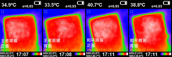 接著再來看看發(fā)熱表現(xiàn)。在室溫約24℃的情況下,半個小時《王者榮耀》后手機(jī)正面和背面的最高溫度,分別為34.9℃和33.5℃;《和平精英》則是40.7℃和38.8℃,如果你想在這個寒冷的冬天找個暖手寶,Reno5 Pro+不是一個好選擇。