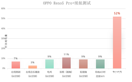 除此之外,小編也對日常大家使用手機最多的幾點功能和應用進行了續(xù)航測試,通過測試數(shù)據(jù)可以看出,Reno5?Pro+的續(xù)航能力確實十分出色,所以在充電以及續(xù)航方面,大家可以放心。?