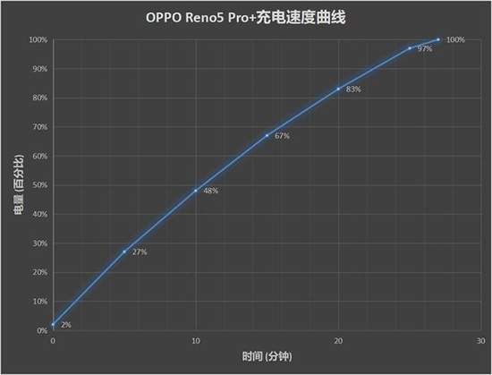 整個充電過程從2%充至100%只用了27分鐘,其中15分鐘的時間即可充入高達66%的電量,比一半還多,對于OPPO家馳名的65W超級快充筆者已經(jīng)體驗過多次了,但依然每次都會覺得很驚訝且很享受,習(xí)慣了這個充電速度之后,你在用別的低于這個充電數(shù)字的手機就都會覺得很慢,但這其實就像拓海開車那樣,不是周圍的物體變慢了,而是我們已經(jīng)習(xí)慣了越來越快。