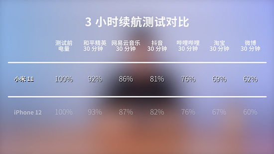 在wifi環(huán)境下,我們將小米11的屏幕亮度限制80%,外放音量設為50%,然后三小時的續(xù)航測試。在這三小時中,我們模擬用戶日常使用習慣,進行了刷微博、聽音樂、玩游戲、看視頻、刷抖音等操作。